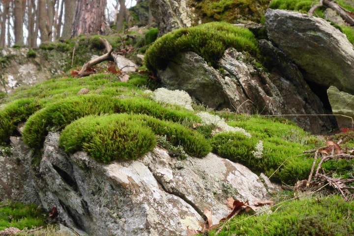 The cool Taunus climate and the Mediterranean Rhine climate meet directly in the Wispertaunus, coupled with a particularly high biodiversity with fauna, flora and funghi. In the valleys, diverse microclimates prevail, stunted oaks grow on the sun-exposed slopes, and we see the most colourful mosses and the most diverse lichens.